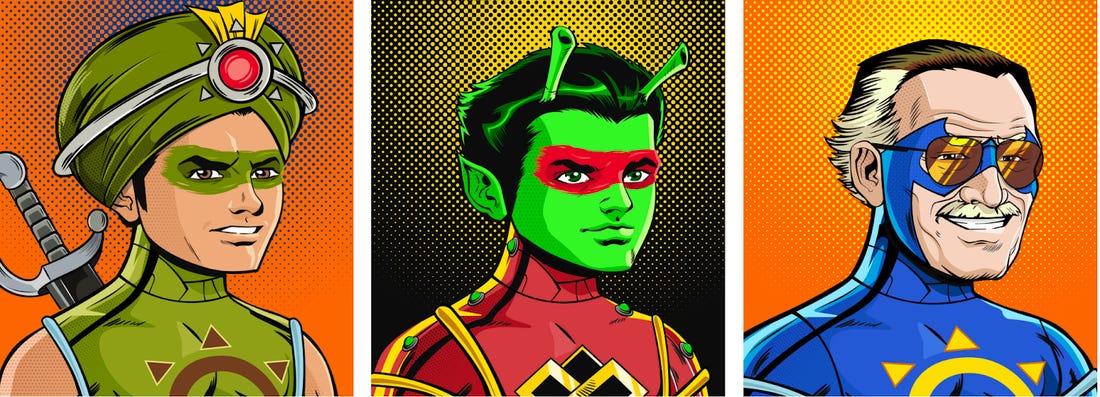 Orange Comet 创造了6865个独特的 NFT,这些 NFT 是由智能合约生成的艺术朋克,其特点是有史以来第一个由 Stan Lee 共同创造的 好莱坞遇见宝莱坞 超级英雄。